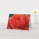 My original artwork is featured on this floral note card, consisting of my original photograph of a pretty rose in a garden with coral orangey-red tones, styled with a watercolor painterly technique for an artsy appearance.