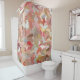 A photograph of a  coral colour necklace transformed into this lively paint splatter designed shower curtain. Pattern is also printed on home decor, fashion wear, baby decor and gift packaging.