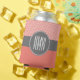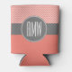 Coral Peach Grey Chevrons Custom Triple Monogram Can Cooler
