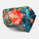 Coral Peach Indigo Navy Blue Roses Floral Neck Tie