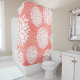 Elegant, stylish and chic, Coral Peach and white colour floral pattern or design for home shower curtains. This modern chrysanthemum pattern will enhance any home decor, bathroom, holiday house or beach house. Perfect home gift for wedding, engagement, birthday or christmas.