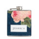 Coral Peonies and Navy Feathers Bridesmaid Flask