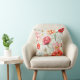 Coral peony flower, white chamomile blossom cushion