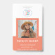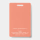 This coral employee badge can be customised with your photo, name and title, business logo and other details. Design features thin orange stripes on a white background.