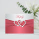 This coral pink and siler grey RSVP card has a PRINTED ON ribbon and FAUX glitter and jewelled joined hearts on it that matches the wedding invitation shown below. If you require any other matching items, please email your request to niteowlstudio@gmail.com