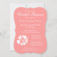 Elegant coral pink and white bridal shower invitations. Custom wedding party invites with white Hibiscus flower. Great for Hawaiian beach wedding and other tropical destinations or locations. Floral design. Beautiful bracket shape or customise. Custom background colour. Stylish script text.