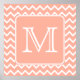 A monogram design in coral pink and white. This design has a zigzag pattern and an initial letter to be customized.