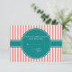 Coral Pink and White Stripes andTeal Wedding RSVP