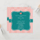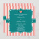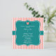 Coral Pink and White Stripes with Teal Invitation