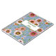Original contemporary botanical artwork featuring a floral pattern of colourful bunches of coral pink, blush and peach African Daisies, aka Gazania flowers, on a blue background.
