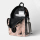 On this stylish back pack is a classy peachy pink and black gypsy scarf with faux coins and coins creating stylish hippy chic vibes. Can be personalised on the front pocket in the black circle with a letter or logo.
