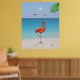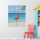Coral Pink Flamingo & Palm Leaf on the Beach Poster