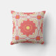 This hand‑drawn throw pillow is covered with large coral pink flowers with sunny yellow centres, surrounded by bold orange and yellow geometric accents on a cream background. The repeating pattern creates a vibrant retro style with a mid‑century modern twist. It’s a colourful accent piece for your sofa, bed, or reading nook.