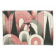 Within this vibrant design, a penguin is nestled in a fantastical landscape of Art Deco-inspired arches, blending coral pinks, lush greens, and soft creams. The composition swirls around the central figure, creating a sense of movement and depth, while the overlaid textures give a nod to the natural world. It’s a harmonious mix of vintage style and modern design sensibilities, perfect for those seeking a touch of retro elegance. This piece captures the spirit of an era with a contemporary twist, offering a stylish statement for any space that values both the past and the present in art.