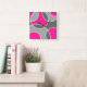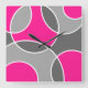 Coral Pink Grey Abstract Circles Square Wall Clock