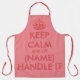 Coral pink keep calm handle it cute women's apron. Modern typography template with crown. Personalised kitchen cooking aprons in any amazing colour combination you like. Stylish template with big letter typography design. Add your own name or humourous meme quote. Create your own one of a kind Birthday party gift for mum, sister, mother, wife, friend, aunt, girlfriend, grandma, co worker, chef, cook, colleague, coach, teacher, bride etc. Available in small, medium and large sizes (no pockets). Long and short options. Also great for fun dinner party, baking, dish washing, painting, art & crafts work etc. Make a his and hers for him and her. Unique presents for good friends and family.