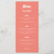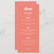 Coral Pink Modern Script Wedding Menu. Customise with your selection of starts, mains, desserts and drinks, as well as your wedding date, and bride and groom names at the top. Feel free to change colours, and text placement to better suit your food selections by clicking on "personalise this template," then "edit using design tool." If you need help making any changes, please message the designer.