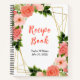 This beautiful and elegant recipe book features watercolor coral pink red roses and foliage on a gold geometric frame. The text combines handwritten script and serif fonts for a stylish and modern look. This makes a great wedding or bridal shower gift, a gift for someone special or for your own use in your kitchen.