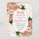 Coral Pink & Red Roses & Gold Frame Bridal Shower Invitation