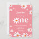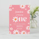 Adorable Coral Pink Retro Groovy Daisy Florals 1st Birthday Invitation.