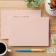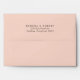 Pink and coral roses with gold leaves accent the inside of this envelope. The outside is a solid coral pink colour which accents the floral bouquet. The return address is printed on the outside back flap with dark brown ink and can be personalised.