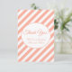 Fashion Coral pink Thank You flat card with pastel coral pink and white striped background. Texts can be personalised.