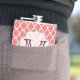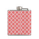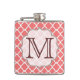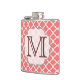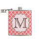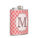 Coral Quarterfoil Lattice Quarter Foil Monogram Initial Personalised Custom Fabric Pattern Whiskey Flask