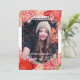 Unique and trendy congratulations graduate announcement and graduation invitation card framed with a beautiful red and blush pink coloured watercolor spring and summer floral wreath on a classic white coloured background. With room to customise or personalise with a photo, the name of the graduate, class graduation year, high school, future college or university name, and celebration party event information. Let the family, friends and neighbours know there is a happy graduate ready to conquer the world, and invite everybody to come celebrate the happy event with you!