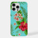 Coral Red Pink Floral On Aqua Blue Turquoise iPhone Case
