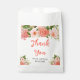 This beautiful and elegant wedding favor bag features watercolor coral pink red roses and foliage. The text combines handwritten script and serif fonts for a stylish and modern look. This is perfect for a spring or summer rustic wedding.