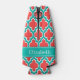 Coral Red, Teal Moroccan #4DS Teal Name Monogram Bottle Cooler