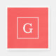 Coral Red White Framed Initial Monogram Napkin