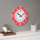 Coral Red White Large Fancy Quatrefoil Pattern Clock