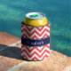 Coral Red White LG Chevron Navy Blue Name Monogram Can Cooler