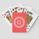 Coral Red Wht Greek Key Rnd Frame Initial Monogram Playing Cards