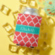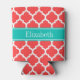 Coral Red Wht Moroccan #5 Teal Name Monogram Can Cooler