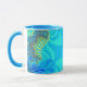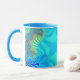 This colourful fractal coffee mug has bright and vibrant rainbow colours such as yellow and light blue. These mugs have several different colours to choose from for the inside and handle of the mug. Also, you can choose from the style and size of these mugs. These mugs are great for kitchen and office use.