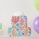 A vibrant and playful pattern featuring coral shapes, seaweed, starfish, and bubbles in a colourful palette of turquoise, coral pink, orange, and lavender. This design evokes the lively beauty of an underwater reef ecosystem.