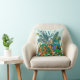 This colourful throw pillow features an original illustration of a coral reef or a tropical aquarium with coral, and tropical fish. Perfect for your beach house, or beach decor. Original artwork. Copyright Leah Wiedemer