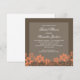 Elegant and refined Rustic Floral Bridal Shower Invitation featuring a two-toned digital art wood panel background in dark brown and a lovely cascade of beautiful flowers framing the bottom of the design in orange. This sweet design is perfect for a wedding shower with an outdoor or garden theme. Easy to customise, simply add the details of your party in the text fields provided. Click on the "Customise It" button to find additional personalisation options.