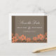 Elegant and refined Rustic Floral Save the Date Postcard featuring a two-toned digital art wood panel background in dark brown and a lovely cascade of beautiful flowers framing the bottom of the design in orange. This sweet design is perfect for announcing a seasonal wedding with an outdoor or garden theme. Easy to customise, simply add the details of your wedding in the text fields provided. Click on the "Customise It" button to find additional personalisation options.