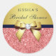 Coral Sequins Gold Navy Diamonds Bow Bridal Shower Classic Round Sticker