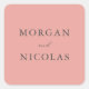 Coral Simple Modern Bride and Groom's Names Square Sticker