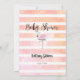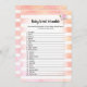 Enjoy playing this Baby Word Scramble baby shower game on soft, girly peach, coral and white watercolor stripes background. Cute, pink, flamingo with white sea clam shells on back with templates created for you.