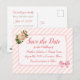 Coral striped bow and Rose Wedding Save the Date Postcards