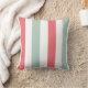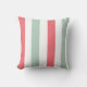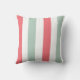 Coral, teal and white broad stripes on a designer throw pillow. Striped throw pillows make great accent decoration, against both patterned and solid coloured sofas, chairs and room designs. Perfect for houseboats, living rooms, bedrooms, cottages, and childrens' rooms.