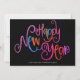 Bold and sparkly New Year wishes to send your friends and family with this glam design with Happy New Year in a set colourful decorative faux glitter script in shades of pink and blue on a black background. The rest of the text you can easily personalise with your greeting and names at the bottom on the front and on the back. The background colours can be changed if you wish via the customise further option.