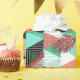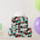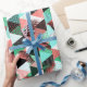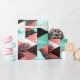 This wrapping paper has a Memphis style triangle pattern in the tropical coral and teal colours. This Florida style design has many geometric shaped patterns inside the triangles along with Miami palm leaves scattered throughout the pattern. You can make the pattern on the gift wrapping paper bigger or smaller. This wrapping paper makes a stylish covering for any gifts your giving to someone that loves the 80s Memphis style look.