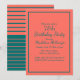 Coral Teal Striped 75th Birthday Party Invite