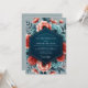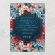 Create a dramatic and romantic atmosphere for your special day. This elegant design features a vibrant arrangement of lush coral and teal anemones blooming against a moody slate blue backdrop. The painterly blossoms create a striking and modern aesthetic, while a deep navy accent adds a touch of sophisticated contrast.